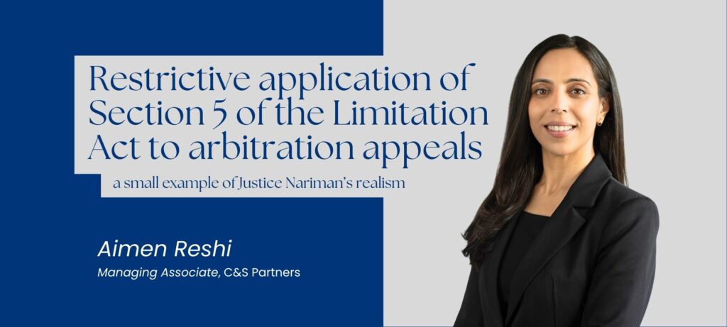 In this article, the Aimen Reshi, Managing Associate, C&S Partners as a Co-author examines the Supreme Court’s restrictive interpretation of Section 5 of the Limitation Act in the context of arbitration appeals, using a recent judgment authored by Justice Rohinton F. Nariman as a focal point. The analysis highlights how the Court reaffirmed that delays in filing appeals under Section 37 of the Arbitration and Conciliation Act cannot be liberally condoned, given the statute’s objective of ensuring speed, finality, and minimal judicial intervention. By contrasting the general flexibility of Section 5 with the stricter timelines embedded in arbitration law, the article illustrates Justice Nariman’s characteristically pragmatic approach, the one that balances procedural discipline with commercial realities. The piece ultimately underscores how this decision reinforces India’s pro‑arbitration jurisprudence by preventing dilatory tactics and preserving the efficiency of the arbitral process.